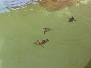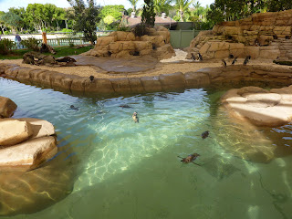 As we were heading toward the exit, Cameron and I came across the penguin enclosure which wasn't open during our last visit to Seaworld. I was completely shocked at the tiny little penguins found here! I had been expecting the white and black penguins found in the North Pole, but instead I was viewing the miniature version! Australia is home to what are called 'Fairy Penguins' and they live along the coastline. These guys were the cutest things I've ever seen and there were so many of them running around, squeaking, and swimming in the water. I could watch them all day and I wish you could keep them as pets!