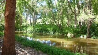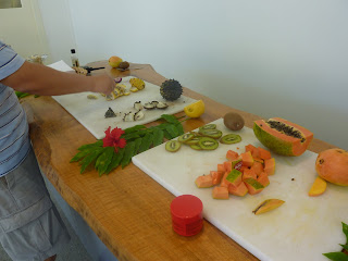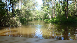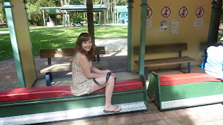 Once we finished feeding the animals we were escorted to a large boat that was floating on the small river that crosses through the plantation. It was absolutely incredible to see the beautiful trees, bushes and birds along the ride. The boat was quite slow so we fed the ducks along the way until we finally reached where we were headed; Treasure Island. At the very back of the plantation is a small island filled with things to do such as miniature golf, a basketball net, tennis, badminton, volleyball, a train ride, and much more. We all boarded the train for a small ride around the island and then ended up back where we started. The group of us stayed there for about half an hour, each doing something different. Cameron and I played at the basketball net where we had a game of Horse which I beat Cameron at. I was just as shocked as anyone else would be, considering I have never been good at sports, especially basketball. Cameron used to be on a basketball team! It only made my day that much better. Once our ride arrived (a golf buggy) we were driven back to the entrance of the orchard and allowed to browse through the gift shop. Cameron bought himself two containers of mango butter and I got one of the black sapotes (the chocolate pudding fruit). All in all, it was a wonderful day that I would love to do all over again. After that we returned home, had dinner, then went to bed. The only other exciting thing I can say I did that day was try two Australian junk foods; jaffas and burger rings. Jaffas are a bit like smarties, only they're filled with orange flavored chocolate. I really enjoyed them, despite the fact I don't normally like orange chocolate. Burger rings are just as you'd expect; burger flavored rings. They were good as well, and it's a wonder why Australia would carry these items but Canada wouldn't. I don't know why some foods are more popular in one country than the other, but it's interesting to see what the people here enjoy and generally, I enjoy it too!