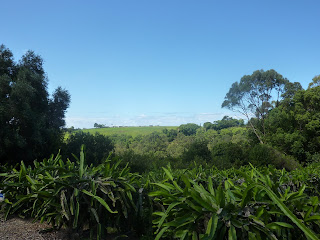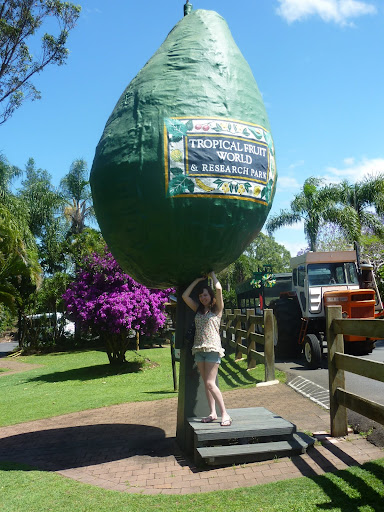 The next day, November 3rd, was quite possibly just as exciting as the 2nd, but in different ways. I got to do another thing I had been looking forward to which was going to a place called 'Tropical Fruit World'. It's a huge plantation orchard farm that is home to the world's largest variety of tropical fruit. The drive to the orchard itself was beautiful and very scenic, and it was so cool to see some Australian farms with red dirt instead of brown. When we first arrived at the orchard I browsed through their plantation pavilion which sells the fresh fruit they've grown and they had a huge variety of different items. There were some things I've never even seen before, like a passion fruit and a red dragon fruit. I was very interested in trying each of them, and lucky for me I was about to! We went up to the counter and bought our tickets for the day which entitled us to a tour of the orchard as well as a visit to the miracle fruit show. We didn't have much time to run down from the entrance to the building the show was taking place inside of, but we managed to get there before it started. Cameron and I sat down in the front row and waited for the rest of the room to fill up, which happened quicker than I had imagined it would on a Wednesday afternoon. Around and in front of us were counters with little plates on them covered in different types of tropical fruit. Some of them were familiar like bananas and kiwis, but other ones I'd never heard of before like the 'Banana cream pie fruit' and the 'chocolate pudding fruit'. After the presenter gave us a small speech about each fruit we were allowed to walk up with our plates and try a sample of each of them. I really enjoyed the papaya, blood orange, chocolate pudding fruit, and the dragon fruit. My favorite by far was the chocolate pudding fruit, which is actually called a black sapote, because it really did taste just like chocolate! There were also a variety of different sauces and dressings there to try, all made from the fruits and vegetables grown on the plantation. Following our taste test we were lead down to a tractor with seats being towed on the back of it and we all sat down to prepare for our orchard tour. The tour itself lasted about half an hour and was much more exciting than you'd think a tour focused on a bunch of different types of plants would be. It was interesting to see what a coffee tree looked like, how bananas are grown and to view a real palm tree with coconuts. I was also able to see the pomegranate bush, 20 different types of apple trees, grape vines, and the tree where macadamia nuts grow on! We stopped at a few spots along the tractor tour, hopped off, and got to pick some of the fruit to try. At one area we pulled off some cherries and grapes, but the type I got was extremely bitter and not my favorite. I did really enjoy picking up some of the macadamia nuts and breaking them in half with the special machine they use there. While I was opening some of the shells, a wild bush turkey came up to me and I fed him a few! That's another neat thing about the orchard; there are wild animals throughout it that consider it their home. We were warned about a snake being near the washrooms when we first arrived, and when I was in the pavilion browsing fruit at the start there was a long white python hiding under one of the counters. I didn't go too close to it, but I did manage to get a photo of it's head!