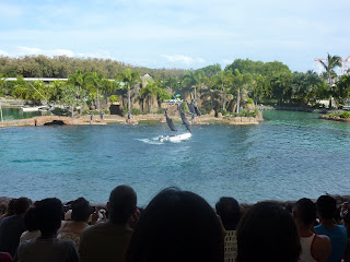 Saturday, October 30th was a pretty relaxed day in general. We slept in a bit and then went to Sea World in the afternoon. The previous time I had visited Seaworld was based mainly around the animals; I patted the stingrays, watched the polar bears and visited the aquarium. This time around I was going there to see the shows in particular. Sea World is known for having quite interesting performances with animals and props and there is a variety of shows to choose from. The first one I went to see was called 'Fish Detectives' and starred a few very sweet sea lions. I cannot believe how completely different and intricate the show actually was. These sea lions didn't just balance a ball on their nose or shake the hand of one of their trainers. They did jumps, they followed direction, and the best part of all was that they followed a story! The plot of the show was that the sea lions were detectives trying to catch a criminal, and you watched as they ran around chasing a human actor, doing tricks along the way. I was absolutely amazed that they were able to remember this long routine that lasted about 15 minutes. I don't know if I've ever actually seen a sea lion in real life other than this experience, but at least from the videos I have watched never have they performed such unique stunts. I was really amazed, and the sea lions were so sweet. I really wanted to run up and pet them, they seem like such friendly creatures.