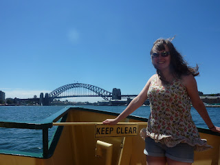The 8th of November was a Monday, which I assumed would be a pretty decent day to visit the zoo. I was hoping it wouldn't be too busy, and it turned out to have just the right amount of people; just enough so that the place wasn't empty but not too many that you couldn't enjoy visiting with any of the animals privately. That morning Cameron and I headed to Darling Harbour to have our breakfast at the Harbourside mall food court. We picked up a sandwich each then started to walk towards the Maritime Museum, as there is a ferry station just outside the building and the best way to get to the zoo is using a ferry. It was a beautiful, humid day outside so when the ferry arrived we got a spot right at the front so that the wind would cool us off. I was so excited to be going on a ferry for the first time because I haven't had much experience in any type of boat. I didn't even know what to expect before it appeared, the only ferrys I'd ever heard of before were the ones that took people to Vancouver Island and were used to transport cars. This one was not extremely large and had two levels you could sit down on with benches outside and seats inside. I am glad I got a seat at the front because it gave me the most beautiful view of the city, the harbour and the water as we cruised down the river. The wind rushing through my hair was just beautiful and I felt like I could stay on there all day since it isn't often I get to go on a boat ride. Along the way I saw about 2 huge cruise ships that reminded me of the Titanic. They were so big and had so many levels I couldn't understand how they could possible float. One of them had a gigantic TV/movie theater on the deck as well as a basketball court, a fitness center, a golf area and a pool. I would love to go on one of those for a week! I also had the opportunity to see Luna Park, the Sydney Harbour Bridge and the Sydney Opera House while making my way to Circular Quay to catch the ferry that leads straight to the zoo. Luna Park is a small amusement park that was built in 1935 and has been maintained and updated since then, making it a somewhat historic site in Sydney. The Sydney Harbour Bridge is iconic of both Sydney and Australia, and I know that when I first pictured the country itself the bridge is one of the very first things I thought of. When you see videos of Australia ringing in the new year this is the bridge the fireworks are always shooting around and above in celebration. Just beside the bridge is the Sydney Opera House, which is a very beautiful and unique building. It's the main performance venue for shows and concerts in Sydney and I bet it would have been neat to venture inside of it and see what the interior is like as well. Either way, the ride just to Circular Quay was incredible.