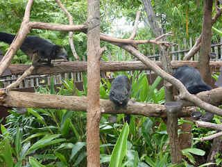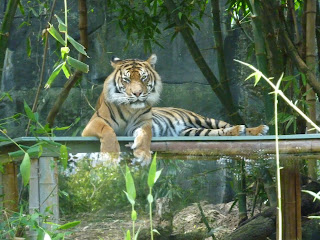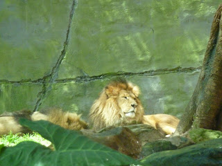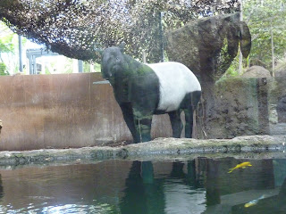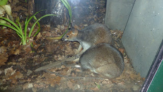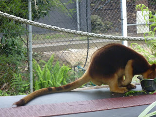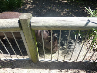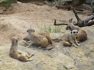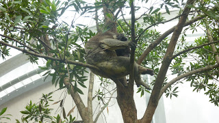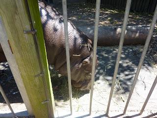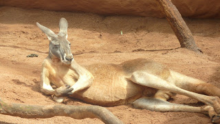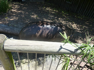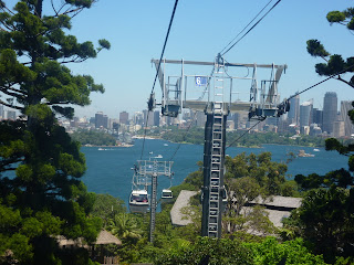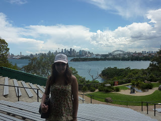 Once we got to Circular Quay we had to take a connecting ferry to the zoo. Circular Quay is a wharf just outside of a very populated and busy area of Sydney. It has many different terminals for ferrys so if you're transferring from one to another you have to go here, much like a bus terminal at a mall. We were able to get on the ferry that leads directly to the zoo and it got us there rather quickly since it didn't have to make any other stops. When we arrived at the zoo Cameron and I took the Sky Safari up to the top of the zoo so we would be able to make our way down. The Sky Safari is a cable car that stretches all the way across the zoo, and I was terrified dangling over top of some of the exhibits as I made my way up. All I could think was, if I fall right now, I'm going to land amongst the gorillas! Luckily I made it to the top unscathed. The zoo itself is incredible. I'm sure I've said that about a lot of things here, but I really mean it with this one. I remember visiting the Edmonton Zoo with Cameron a month or two ago and it's just pathetic compared to this one. It is absolutely gigantic, with so many different sections and areas to visit that in the 6 hours we were there we barely made it through the whole thing. The environment for the animals was extremely spacious which is nice to see, as I'm sure not many zoos can provide a lot of room to accommodate so many different types of animals (about 2,600 different species). I really enjoyed walking through each area, spending a few minutes seeing each animal and just seeing how they spend their time. There were several different types of birds and a few different aviaries, kangaroos, wallabies, emus, koalas, wombats, tasmanian devils, a bilby, lizards, frogs, giraffes, zebras, gorillas, monkeys, a nocturnal section with bats and other night-time creatures, a snow leopard, a hippopotamus, a meerkat (like Timon from the Lion King!) and so, so many more. My favorites of the day were the gorillas, as they were so human-like it was scary. The baby gorilla was about the size of a 4 or 5 year old child, and he kept playing with a palm frond, hitting the huge gorilla that I assume was his parent. At one point the giant gorilla grunted, swept up a bunch of twigs on the ground, pulled them close to him with his extremely long arms, then simply fell right over onto them and went to bed. I could have spent hours there watching them. It's so neat to see an animal that is so similar to humans and to compare how we evolved and how different we really are. Another animal I enjoyed seeing was the hippopotamus, as there was both a pygmy version and a regular-sized one. They were both so sweet and unique looking, and as friendly as they looked from afar I'm sure they're dangerous up close. A lot of the animals seem quite lovable and sweet when you watch them from behind glass and bars, but I don't know if I'd want to be up close and personal with a bat or a bearcat any time soon.