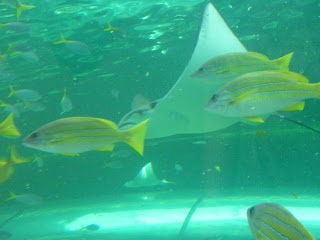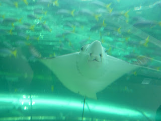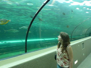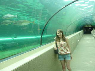 I don't even know where to begin to describe the Sydney Aquarium. It is unlike anything I've ever seen, and I saw hundreds of different types of fish and animals that I couldn't list them even if I tried. We were there about 2 - 3 hours but I wish we would have stayed the whole night. There were fish from all over the world, jellyfish, sea horses, sharks, sting rays, manta rays, turtles, penguins, dugongs and much more. Some of them were only native to Australia while others were brought here from around the world. I loved seeing things like the stone fish (the most venomous fish in the world), the bright pink jellyfish, the three different types of sea horses, the dugong and the huge variety of different types of sharks. It was incredible to walk through some of the aquariums, especially the ones that were nearly complete cylinders and allowed you to look both above and beside yourself at the different fish. It was absolutely stunning to see the bottom of a sting ray as it passed above me, and to watch a shark swimming just underneath my feet. I spent quite a few minutes in the underwater aquarium that spotlighted the sharks, watching the different faces get so close to the glass it felt like I could touch them. The turtle was especially cute, walking on it's front legs and floating around the see-through tunnel, and the manta and sting rays were literally as huge as my whole body. It was so creepy to stare into the face of an eel, and I couldn't figure out how some of the fish were able to swim without fins! Overall it was such a memorable experience, I know I will never forget the feeling of viewing all of the stunning animals. I was completely in awe just to be near them and it's one of those experiences I will keep with me forever.