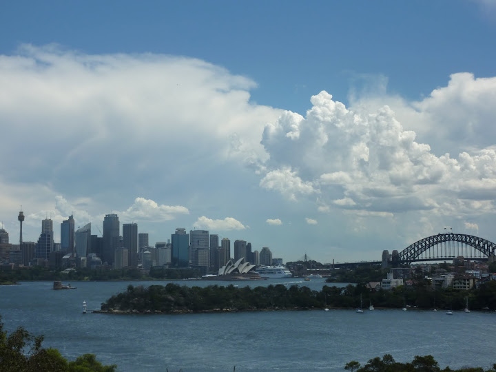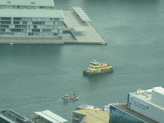 Unfortunately we had to cut our zoo visit short at about 3:30PM as a storm seemed to be heading our way and Cameron and I didn't want to be traveling home by water when it finally touched down in our area. We only waited about 20 minutes to get picked up from the zoo and taken back to Circular Quay, but that's where our troubles began. The woman at the counter apparently told Cameron to go to Dock 5 to catch our ferry, but once we got there we noticed there was both a 5A and a 5B side. There was already a ferry at 5A and it was boarding, so we didn't have much time to think about it before it was going to take off, so we hopped on as well. This turned out to be quite a monumental mistake, as 5A and 5B are very different ferrys that go in completely different directions and areas in the city. Basically, for an hour and a half, Cameron and I got a lovely tour around the residential area of Sydney as the ferry we were on dropped off and picked up business people heading home from their days at work near Circular Quay. It really wasn't the worst experience, because even though we didn't get on the right ferry we didn't have anything planned for the night anyways and the trip itself was quite nice and relaxing. The storm had went away by the time we go to Circular Quay from the zoo, so there was no rain or winds to worry about as we floated around. At first we were a little upset about having to way for an hour and a half just to get back to Circular Quay where we started from, but it's a fun memory we'll have and a lesson I don't think I'll ever forget about how to properly catch a ferry.