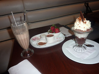 After we finished dinner we discovered a tiny little store called 'Lindt Chocolat Cafe' nestled in between two of the restaurants on the Harbour. Upon walking in I was overwhelmed with the amount and variety of chocolates lining the walls and the menu for the cafe itself. There were a ton of different varieties of lindt chocolates I've never even seen such as cookies and cream, caramel brulee, peanut butter, spearmint, irish cream, hazelnut brulee and orange chocolate. Not only was there a huge selection of chocolates to pick from, the menu was also incredible, offering chocolate cakes, cookies, waffles, fondue, milkshakes, hot chocolate and sundaes all featuring Lindt chocolate. Cameron and I were so excited to try something made with Lindt chocolate that we got 3 things to share; a chocolate fudge brownie sundae, a chocolate strawberry dipping plate, and a chocolate milk. They were all incredible and the quality of the chocolate was noticeable. I knew that if my mom were there she'd be in heaven as well because I know she loves Lindt.
